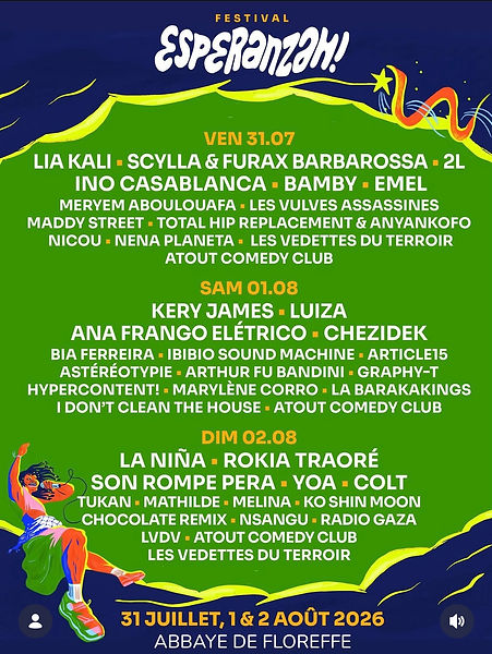 Esperanzah 202601 août 2026, 14:45 – 15:45Esperanzah!, Rue du Séminaire 7, 5150 Floreffe, Belgium